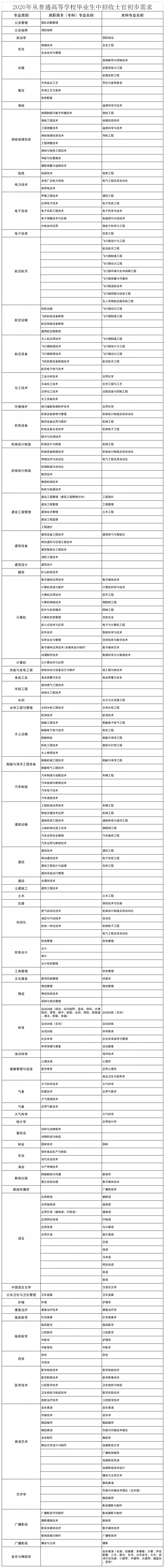 附件:2020年從普通高等學校畢業生中招收士官初步需求