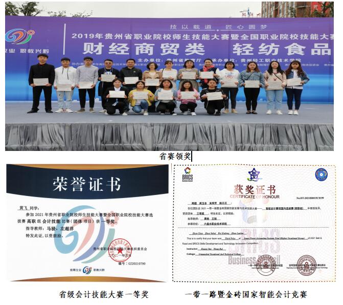 2012 年以來,已連續 6次獲得貴州省職業院校技能大賽會計技能項目團體“一等獎”,4 次代表貴州省參加國賽,2021年首次參加一帶一路金磚國家智能會計技能大賽,榮獲三等獎。多次承辦六盤水市職業院校師生技能大賽會計技能等賽項比賽。