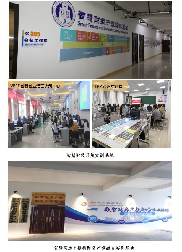 政校行企共建“六盤水市财政金融人才培訓基地”“智慧财經開放實訓基地”“省級高水平數智财務産教融合實訓基地”“會計夢工廠”等集“産、學、研、訓”于一體的校内實訓基地,能滿足專業實踐教學、技能訓練、1+X證書考評、社會培訓、技術服務等。建有新道數智财務産業學院、用友·新道卓越數智現代學徒制班。